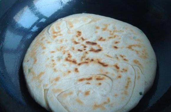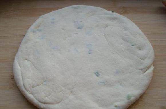 輕輕地搟一搟,這樣一個旋餅就做好瞭,最後搟成圓餅
