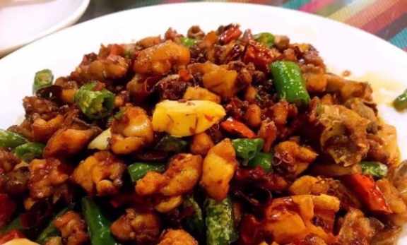 許多食客也喜歡這的辣子雞丁,辣椒色澤鮮亮,雞塊是麻辣口的,融合咱們當地的飲食習慣,吃起來沒有那麼辣。這裡的一魚兩吃清淡爽口,幹煸肥腸乾淨焦脆,菜品大部分都不會踩雷。