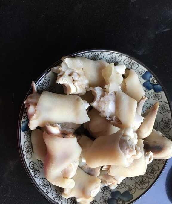 第一步:首先準備羊蹄,將羊蹄處理乾淨,表面有羊毛的話用火燎一下,然後將羊蹄放入開水中煮一下,煮出血水然後撈出來放入冷水中浸泡,直到完全凉透了之後撈出來備用。