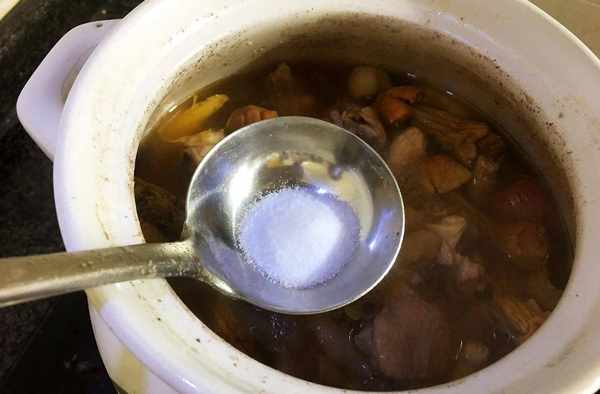 4.姬松茸蓮子雞湯就做好啦,再加入適量的鹽調味,就可以開吃啦。