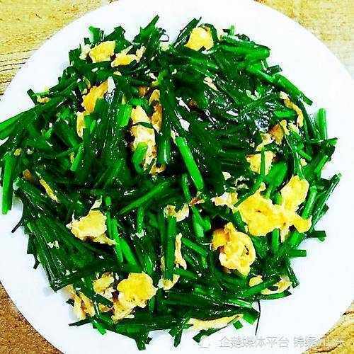 第二道菜肴是韭菜炒雞蛋,質地松軟,口感鮮美。韭菜具有溫中祛寒、行氣利水的作用,可以促進體內濕氣的排出。雞蛋含有豐富的優質蛋白質,對於身體的細胞修復和新陳代謝非常有益。