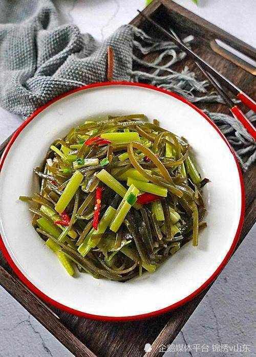 第三道菜肴是芹菜炒海帶絲,清爽可口,富含膳食纖維和微量元素。芹菜含有的維生素C和鈉離子可以幫助身體降低血壓,海帶絲具有軟化血管、降低膽固醇的作用。