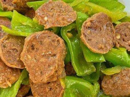 1、青椒去蒂洗凈後切成小塊,牛肉丸切成片。