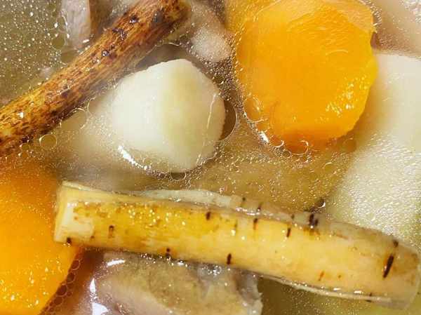4、接著再放入山藥和胡蘿卜繼續燉煮半個小時。燉煮好瞭之後,加入適量的食鹽調味,攪勻煮入味即可出鍋開吃。