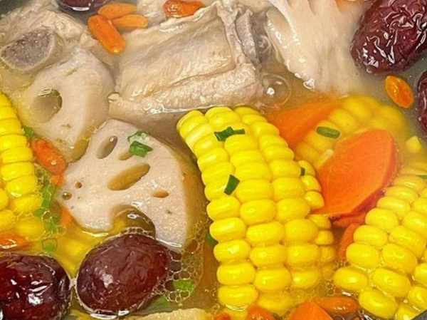 1、蓮藕削掉外皮,清洗幹凈後切成塊。玉米洗凈後剁成小塊,胡蘿卜削掉外皮洗凈後切成滾刀塊。