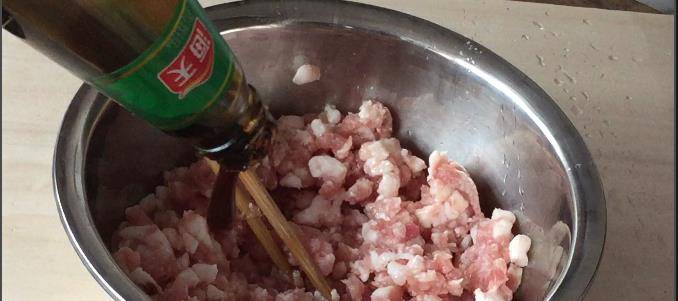 調餡的第一步:肉餡裡加一勺花生油,鎖住水份增加口感,加耗油適量,鹽小許入味,雞粉適量,增鮮。十三香兩克,香油適量增加口感,攪拌均勻備用,大廚這叫【養餡】