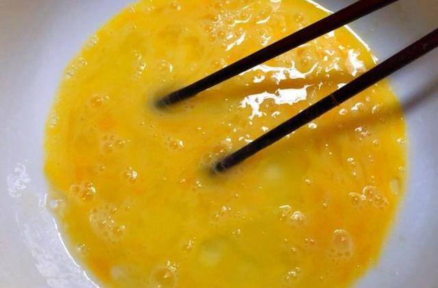 3、把3個雞蛋磕入碗裡,用筷子攪打成蛋液。