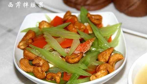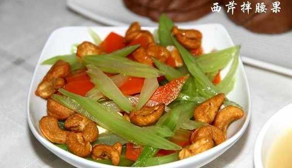天氣越來越熱,來點清爽的小菜,西芹拌腰果倒是很合適的一道涼菜,有營養豐富的西芹,傘形科植物,它既不是根菜,也不屬於粘滑食物,它營養豐富,富含蛋白質、碳水化合物、礦物質及多種維生素等營養物質,還含有芹菜油,具有降血壓、鎮靜、健胃、利尿等療效,是一種保健蔬菜。而腰果中維生素B1的含量僅次於芝麻和花生,有補充體力、消除疲勞的效果,適合易疲倦的人食用。另外腰果含豐富的維生素A,是優良的抗氧化劑,能使皮膚有光澤、氣色變好。除此之外腰果還具有催乳的功效,有益於產後乳汁分泌不足的婦女。