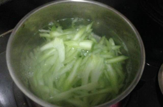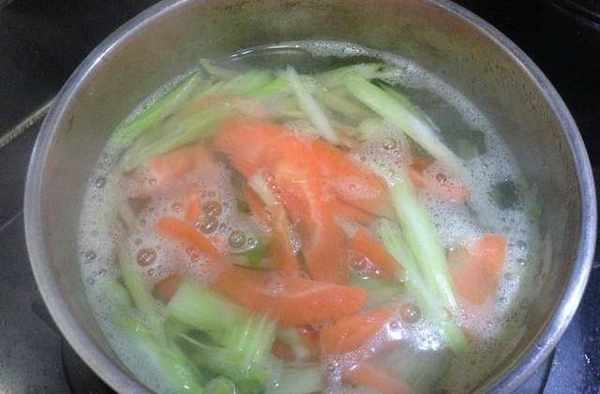 4、鍋裡燒開水,把西芹焯熟;