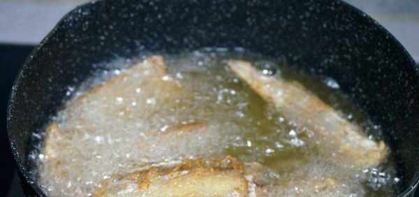 第四步,鍋裡油燒熱,把帶魚掛在面糊上,然後下鍋炸至金黃色,取出最後炸,再上鍋炸至酥脆。