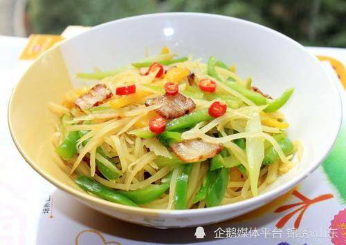 2. 青椒土豆肉絲小炒:這個菜品中含有大量的蛋白質和脂肪,其中的土豆和青椒所含的豐富的維生素和礦物質對於身體的健康也非常有益處。
