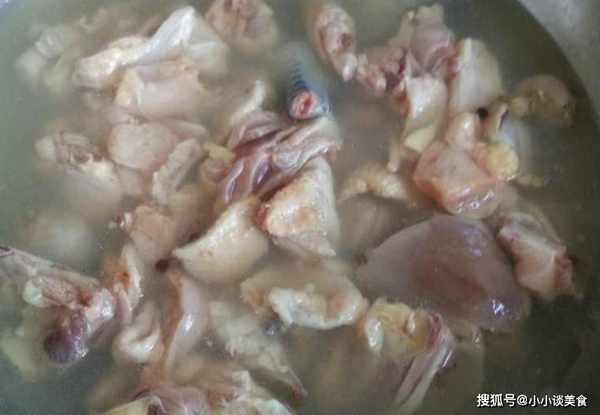 提示3:雞肉焯水後,將其放入一鍋冷水中。隻有冷水才能使雞肉在漂燙過程中更幹凈。因為用熱水的時候,污垢和血水會凝固在雞肉表面,根本煮不熟,雞肉的營養就會被阻擋,導致燉出來的雞湯幾乎沒有營養,而且不會好吃的。