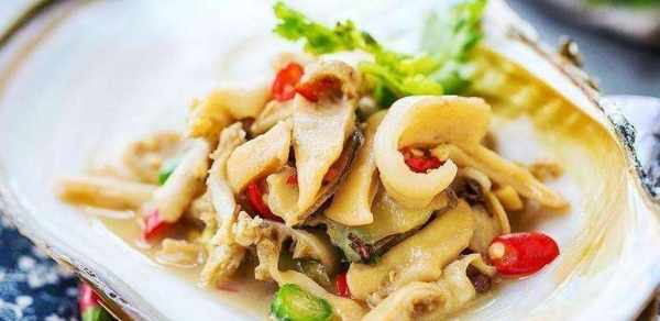 第二步,鍋中燒開水,加入鹽和料酒,將蚌肉焯水,焯水1分鐘後立即撈出待用。