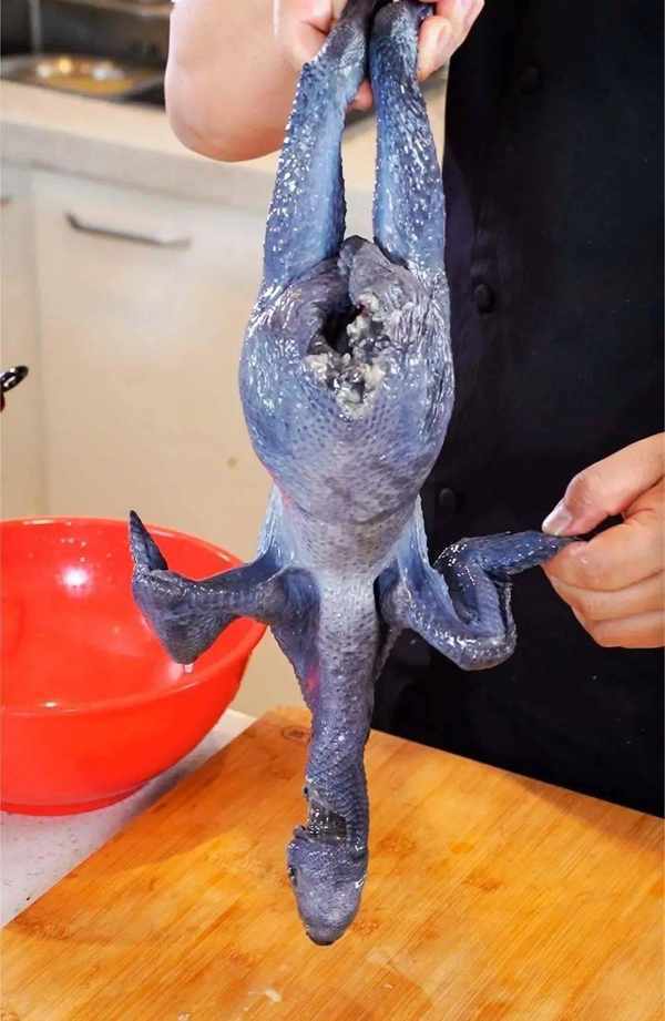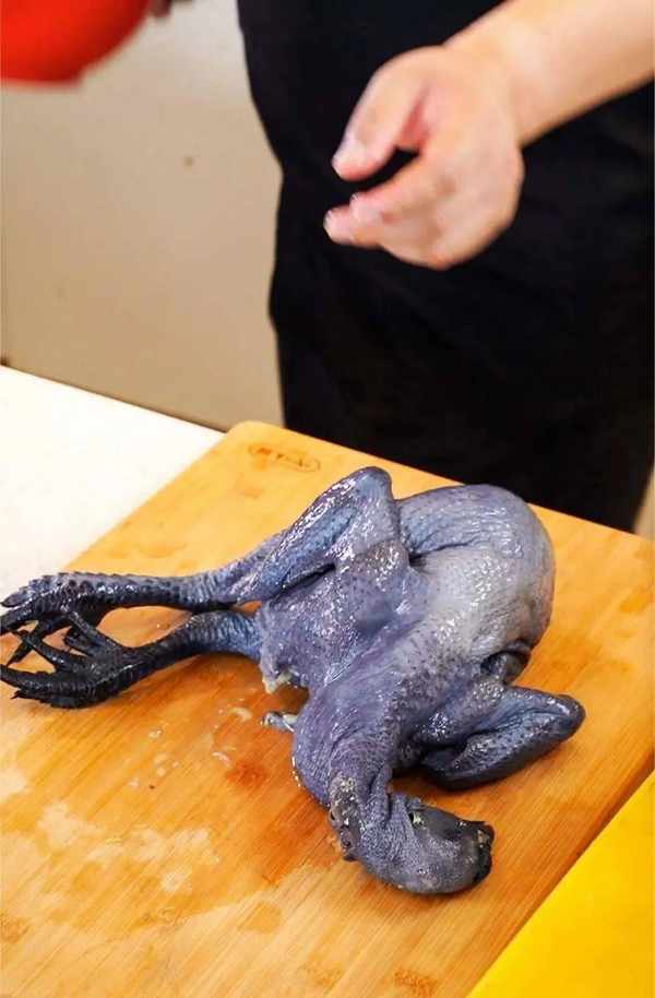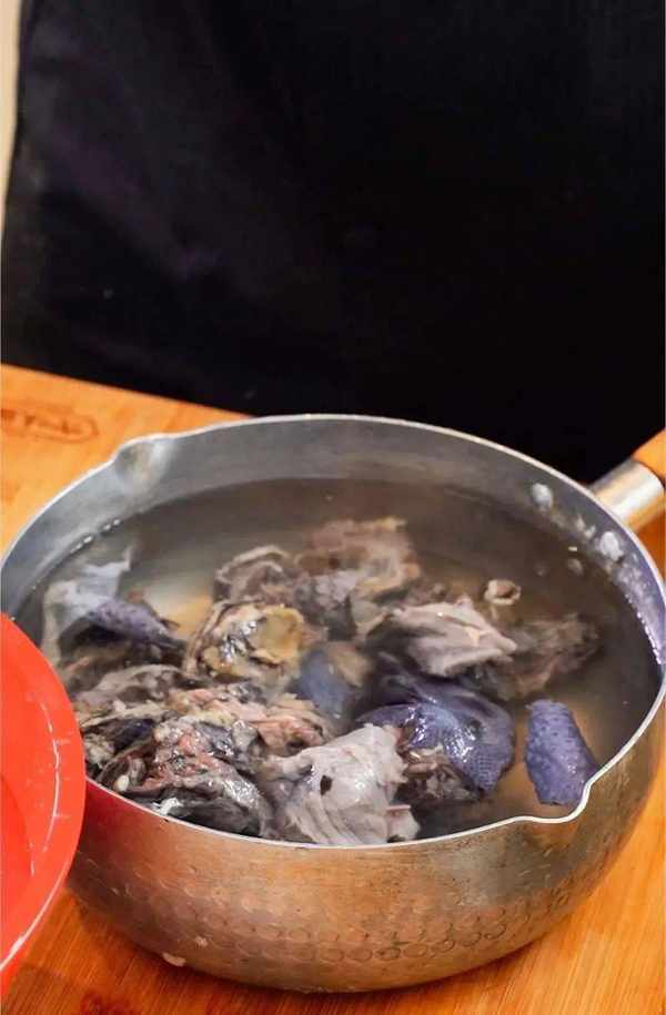 1、烏雞去毛直接用開水燙一下即可,內臟掏出後不要浪費可以冷凍起來留著下次燉菜用。