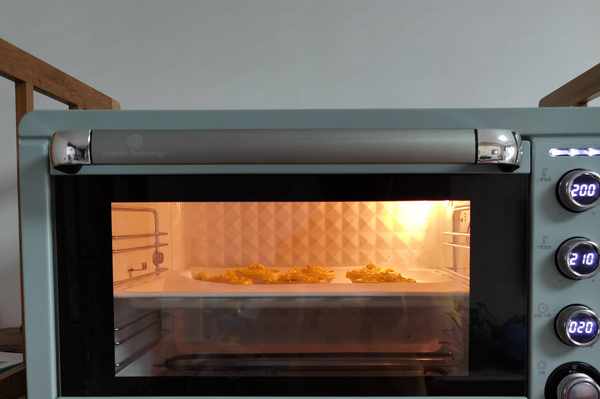 建議2:底火比上火高10度烤。如果烤出來底部還覺得不夠酥脆,可以翻面,底部朝上,再烤5分鐘,把底部烘烤一下。