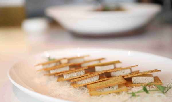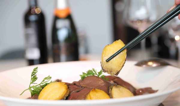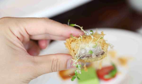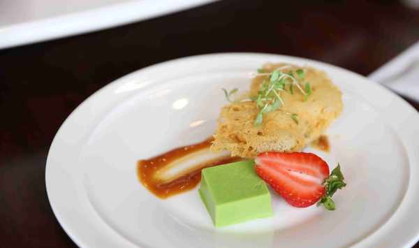 酥脆薄餅鵝肝贏得瞭大傢的喜愛。嚴選上等的法國鵝肝作為食材,加入藍莓打碎,夾在海苔薄餅中,口感十分香脆。鵝肝口感細膩,就像奶油一般,在嘴裡化開的時候滿嘴都是馥鬱的香氣。