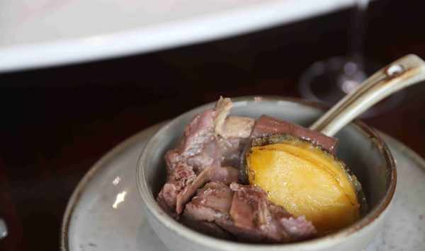 在不念必點的菜品中,鮑魚滴露鴨一定是排在前三的。這次的夏季新菜,對這道經典的招牌菜做瞭升級,增加瞭南日島天然八頭鮑。鮑魚的添加也是有講究的,8顆不多不少剛好,是口味最佳的配比。加入福建老酒蒸制,還有鴨血和鴨肉入菜。鴨肉吸汁軟爛,口感特別鮮嫩。