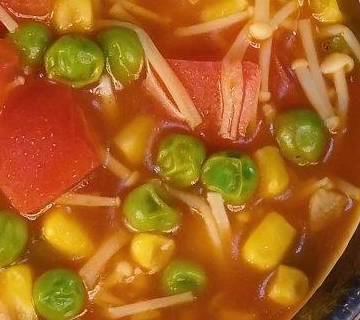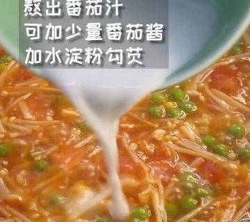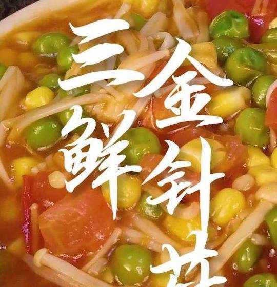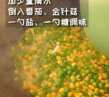 用料金針菇150g青豆50g玉米粒50g番茄一個