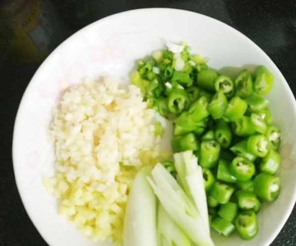 4、蔥薑中加入適量水,把蔥薑捏擠一下,泡成蔥薑汁待用。