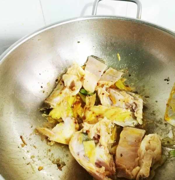 7、放入魚骨翻炒入味。