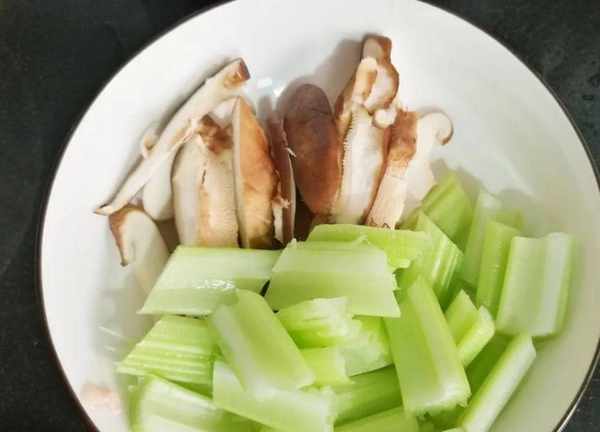 2、配菜可以根據自己喜歡準備豆芽、金針菇、海帶、青菜等,我準備瞭芹菜和香菇。