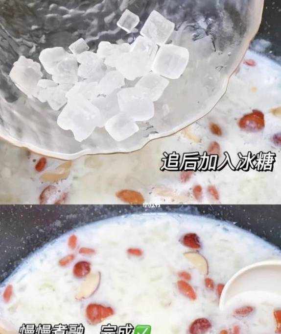 4.這個時候奶香奶香的糖水的味道就出來瞭!加點冰糖就好瞭!