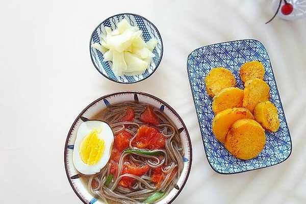 我今天的早餐,一碗西紅柿營養低卡面,烤紅薯和一小碟醋泡薑,可謂是最簡單的早餐瞭,但是讓人吃得很舒服。雖然是盛夏,早起還總是喜歡熱食的。分享朋友圈的時候,本來我是曬面的,但是很多網友卻對我的那一碟小菜勾起瞭興趣,來看看我的幾樣美味吧。