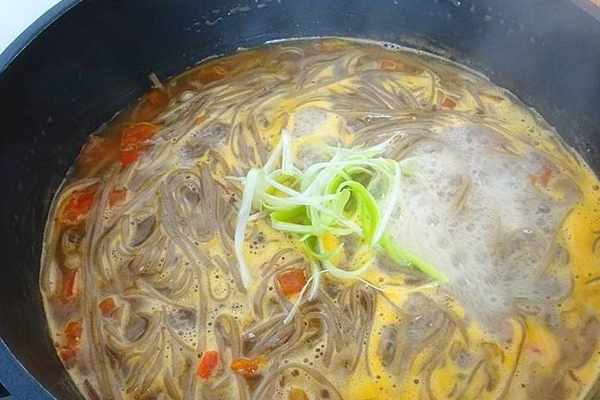 待到水開後,放入掛面,煮到自己喜歡的口感,放點蔥絲出鍋。