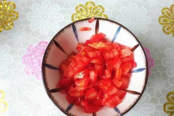 把西紅柿切碎,隨意切就行,小一點,利於後期操作。
