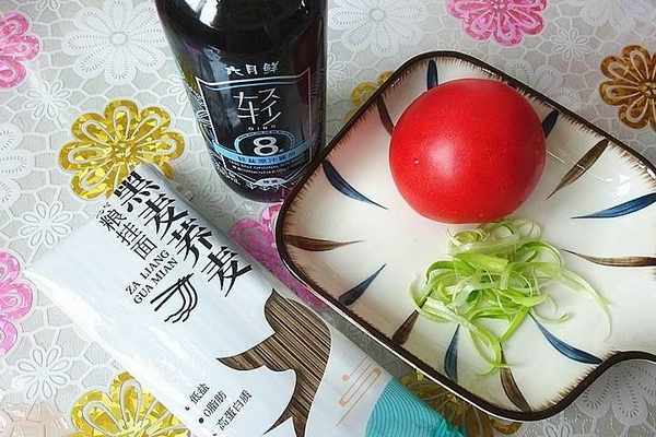 準備材料,掛面,西紅柿,蔥花和醬油。