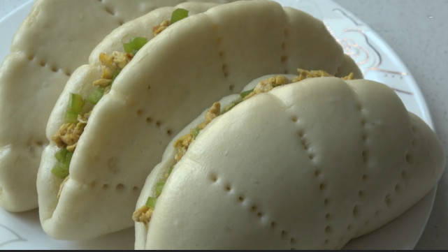 再把尖椒切成丁,鍋裡倒油。油熱瞭,把雞蛋炒一下。再放上一勺黃豆醬和切好的尖椒,把尖椒炒到斷生就可以瞭。把炒好的雞蛋放到蒸好的饃裡,就可以開吃瞭。荷葉餅的傢常做法,蓬松暄軟,夾上青辣椒炒雞蛋,實在太香瞭