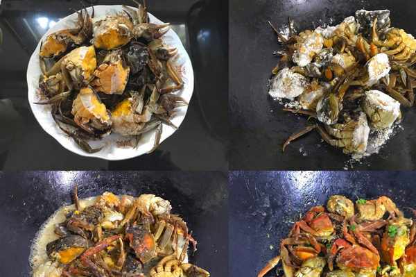 2、把蟹的切面裹上一層面粉,裹面粉是為瞭不讓它的膏黃在炒的過程中流在湯汁中。
