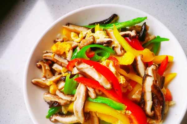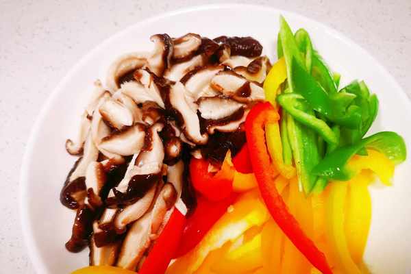 美味的香菇炒彩椒就可以裝盤享用瞭。