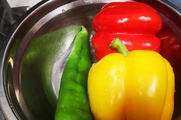 2、彩椒洗凈,切絲,裝盤備用。