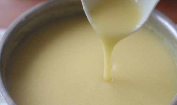 4、攪打成細膩的玉米糊,如果喜歡口感更細膩的可以過篩一遍,打好之後倒在奶鍋裡,把浮末打掉;