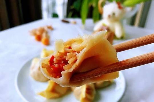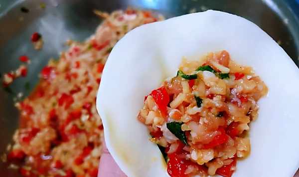 2.醃制好的茄子用手攥幹水分,直接放入豬肉餡裡攪拌均勻就可以啦。然後用現成的餃子皮將這些肉餡包裹起來,直接開水下鍋煮。水開後往裡面加入三次冷水,就可以出鍋裝盤啦!