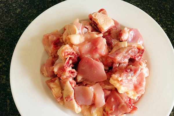 2、雞腿洗幹凈之後切成小塊。