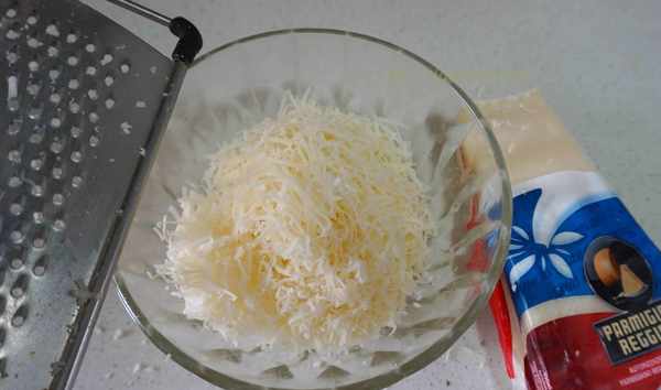 帕瑪森奶酪用菜刨子刨成奶酪碎,如果沒有這樣的奶酪,也可以用奶酪粉。