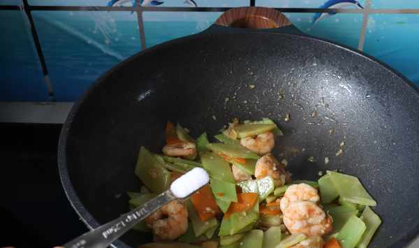 所需食材:萵筍:1根,大蝦:10隻,胡蘿卜:1小段所需調味料:料酒:半大勺,淀粉:半大勺,黑胡椒粉:1小勺,生抽醬油:1大勺,食鹽:2小勺,薑蒜:適量