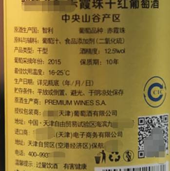 在天津自貿易試驗區灌裝的葡萄酒我仔細研究瞭背標,就發現瞭端倪。