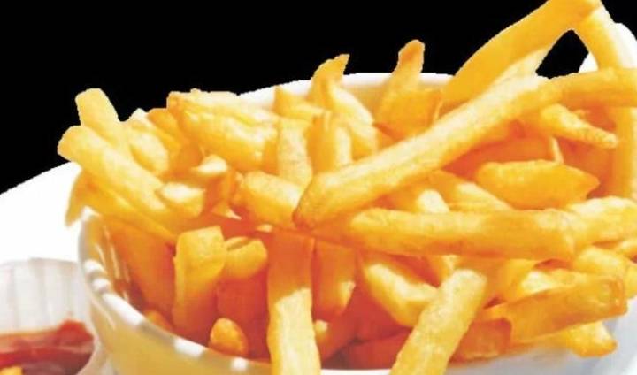 2、起鍋燒熱倒多些油,放入土豆條中火慢炸至表面變金黃色盛出,吃時蘸取番茄醬即可。