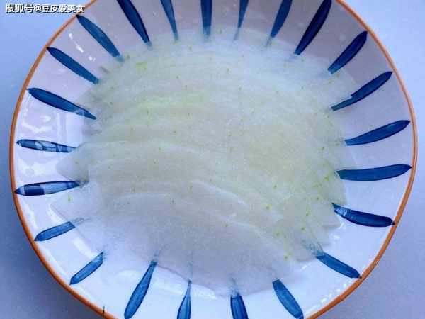 1、冬瓜削掉皮,掏掉瓤,清洗幹凈,切成片,厚度大約在2-3mm左右就好。要切得大片一點,一會才包得起來。切好後,撒上一些鹽,輕輕抓拌均勻,靜置一會兒。