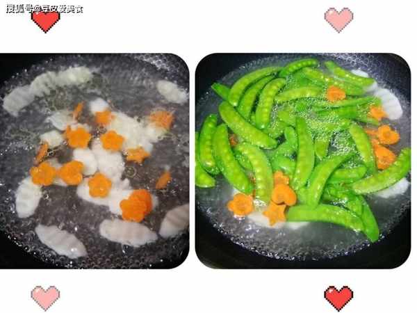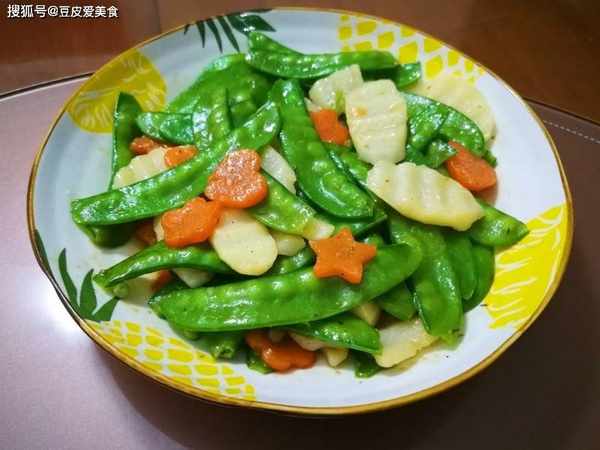 1、荷蘭豆撕掉筋,清洗幹凈。山藥去皮,洗凈,切成塊,胡蘿卜也去皮洗凈,切成塊。鍋裡燒開水,下入少許鹽和油,再下入山藥和胡蘿卜,焯煮片刻,再下入荷蘭豆,焯煮片刻,撈出,過涼水。