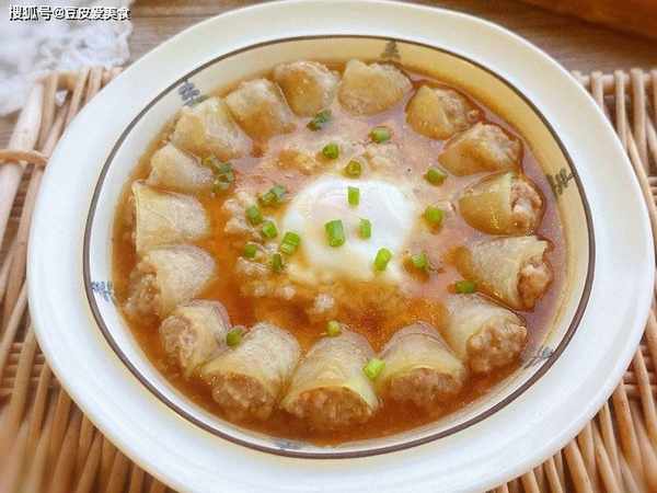 材料:冬瓜1塊,豬肉末100克,蠔油1勺,生抽1勺,胡椒粉1勺,鹽適量,玉米淀粉1勺,雞精適量,雞蛋2個,蔥花1勺。