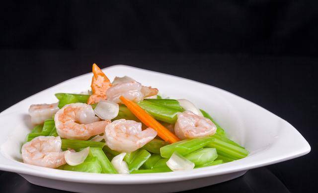 食材:百合、西芹、蝦仁、蒜末、料酒、鹽、胡椒粉、食用油。