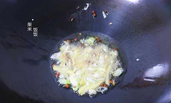 4,炒鍋再加少許油,放入蔥、薑、蒜、花椒,小火炒出香味。