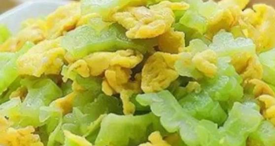 4.鍋內熱油放入苦瓜,翻炒至七成熟後,放入雞蛋翻炒均勻。