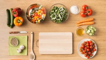 食材:芹菜75克,素雞40克,胡蘿卜20克、蔥花少許,鹽1克,花生油3克。