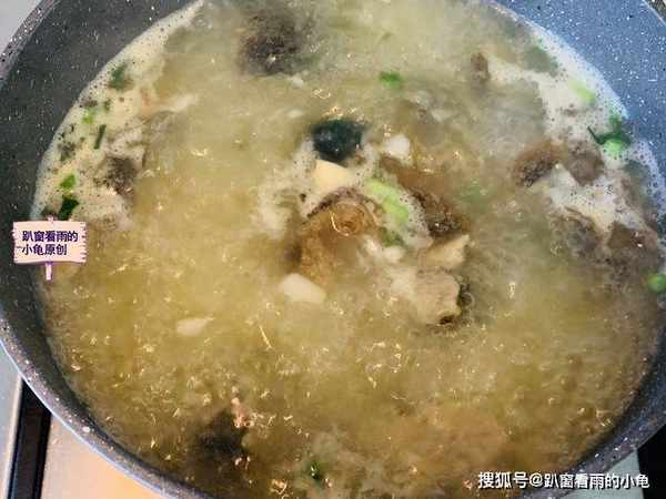 5.倒入適量開水,大火燒開,將湯燒至奶白色。