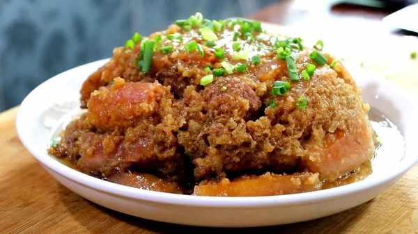 壓鍋粉蒸肉,邵陽這一帶的餐館都喜歡做這道菜,粉蒸肉的粉末各傢有自己的特色,這傢店就是比較細膩和香,帶著五花肉一起高壓鍋蒸,吃起來肥碩相依,油滋滋的。